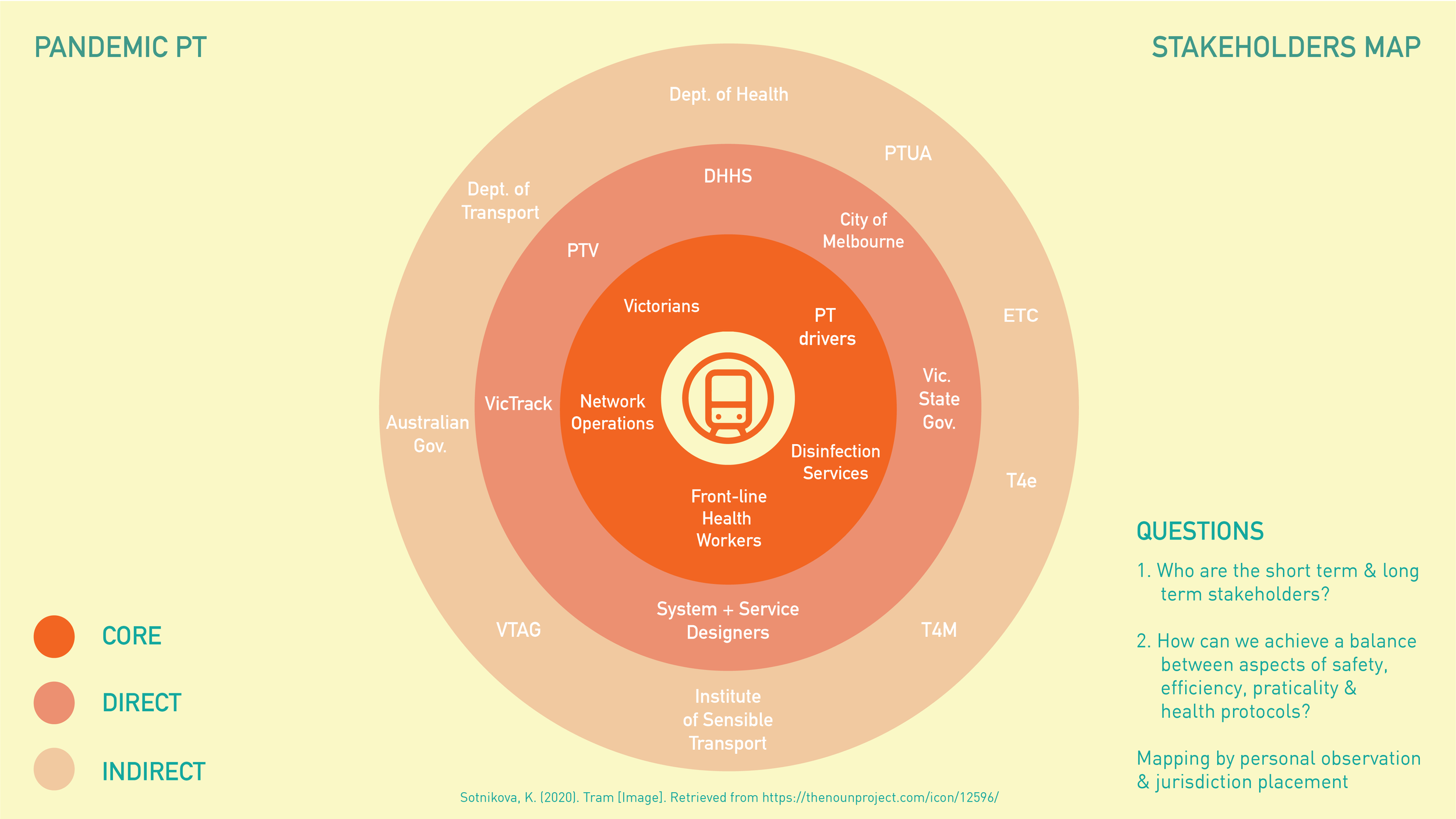 Public transport is imperative for the livelihood and productivity of Victorians (RACV, 2020). However, the pandemic has forced Melbourne into uncharted waters with months of lockdowns resulting in doubled mental health complications (Butterworth, 2020). Involving design can ease the severity of transmissions and establish a balance of public awareness and understanding regarding expert advice.